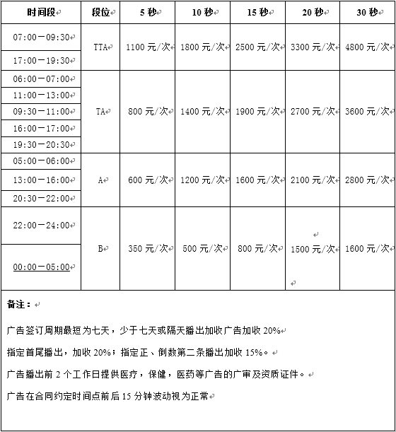 河南廣播電視臺(tái)各廣播頻率廣告刊例
