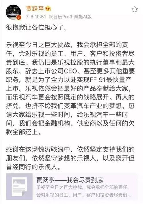 2、辭任之前賈躍亭剛發(fā)了道歉信,說會(huì)負(fù)責(zé)到底