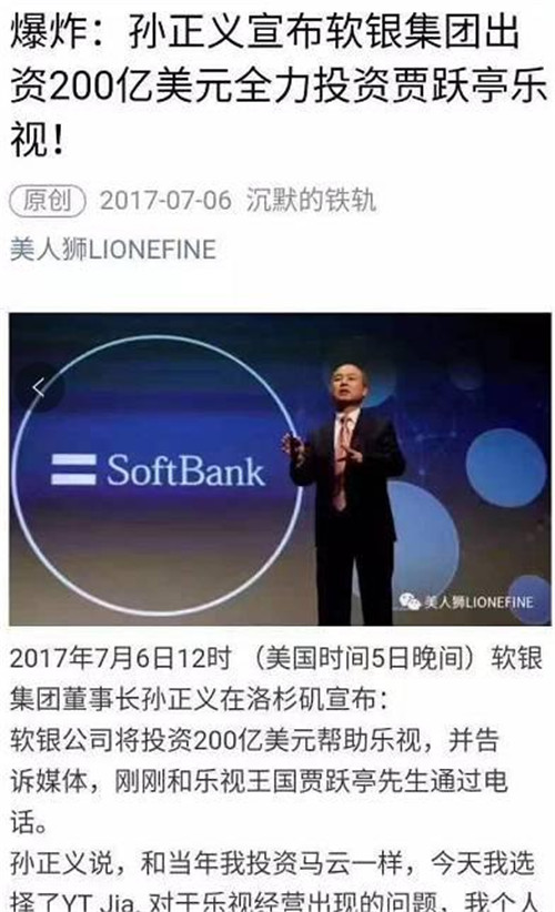 凡是相信“孫正義投資樂視200億美元”的人智商都需要充值。第一,軟銀自己因?yàn)榫拶Y收購(gòu)ARM資金鏈都很緊,哪來(lái)這么多現(xiàn)金?第二,這個(gè)世界上沒任何互聯(lián)網(wǎng)公司能拿到單筆超過50億美元的投資。第三,文章那么多驚嘆號(hào)……孫正義表示這個(gè)鍋我不背!一看就是個(gè)憤憤蹭熱點(diǎn)的,不值得為這種垃圾信息浪費(fèi)時(shí)間