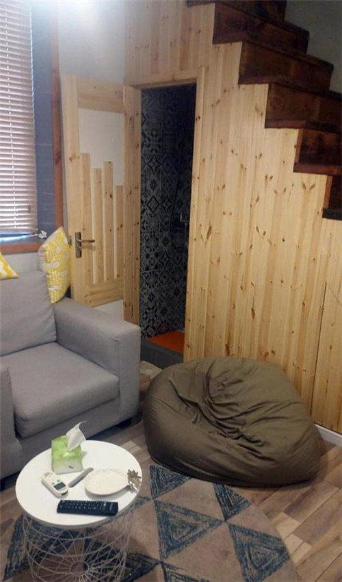 室內(nèi)總面積大概20平方米,被分隔為上下兩層。房屋雖小,家具及電器卻十分齊全。一樓有冰箱、洗衣機、電視等家電,一人坐的沙發(fā)和懶人沙發(fā)供休閑,布置緊湊,一角的衛(wèi)生間可容納一人洗漱;二層則放置了一張雙人床和一張氣墊床?!俺肆酪路环奖?,其余的體驗我們都挺滿意的”,兩人告訴記者,“民宿更有老上海味道,退房也只需要把鑰匙放在門口的箱子里,非常方便?!?/font>