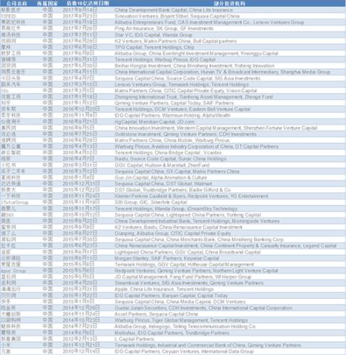 中國地區(qū)獨角獸公司名單 來源:CB Insights