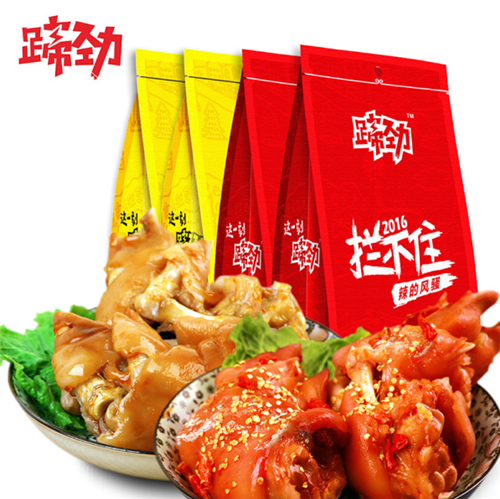 蹄勁豬蹄,我們鹵的不只是豬蹄,更是能量與樂(lè)趣;從一出生,就自備能量標(biāo)簽和互聯(lián)網(wǎng)精神。全民參與試吃,漂洋過(guò)海創(chuàng)新,百位美女挑蹄,眾多大咖獻(xiàn)計(jì),這只辣的風(fēng)騷、香的誘惑的豬蹄在2015成為最具活力和創(chuàng)意的農(nóng)業(yè)深加工品牌:營(yíng)銷(xiāo)視頻點(diǎn)擊量突破600萬(wàn),微信公眾平臺(tái)一夜?jié)q粉6萬(wàn),獲得2015年“標(biāo)桿”中國(guó)營(yíng)銷(xiāo)大獎(jiǎng)——?jiǎng)?chuàng)新案例獎(jiǎng),得到羅輯思維、億邦動(dòng)力、南方人物周刊等權(quán)威媒體平臺(tái)的鼎力推薦,為中國(guó)農(nóng)業(yè)探索互聯(lián)網(wǎng)營(yíng)銷(xiāo)模式提供了良好范本!