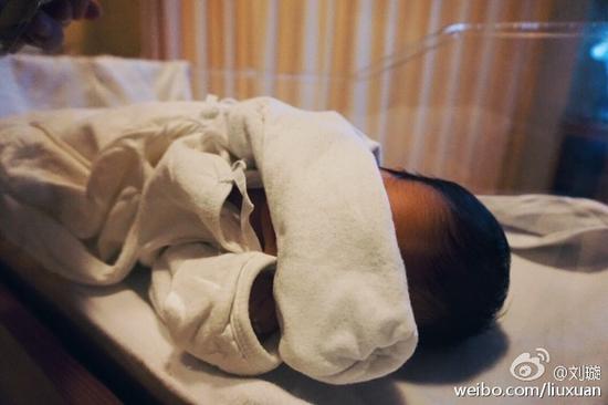 10月8日,劉璇[微博]平安產(chǎn)下一子。11日,她在微博上曬出了新生兒的照片,老公王弢轉(zhuǎn)發(fā)笑稱干爹干媽太多。