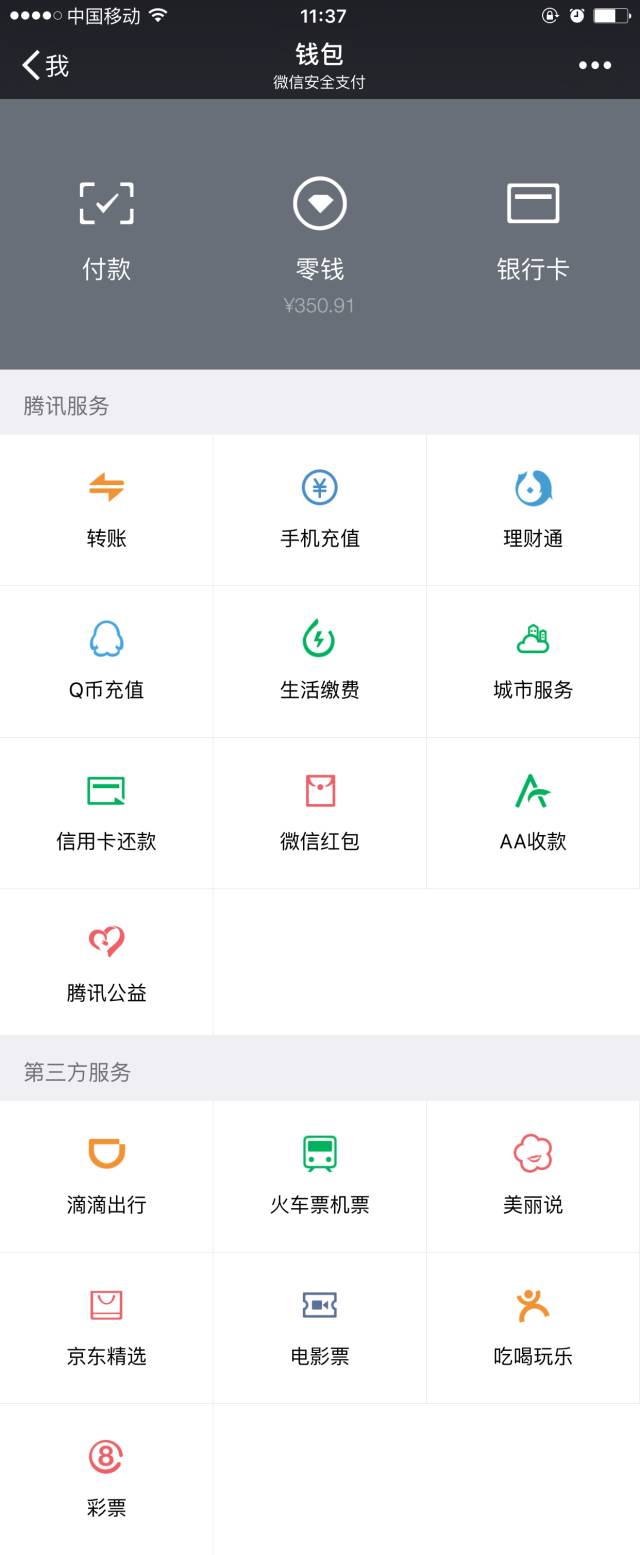 可用地盤(pán):京東、滴滴出行、大眾點(diǎn)評(píng)、美團(tuán)、餓了么、攜程等……更多用法早已經(jīng)藏在微信“錢包”里了