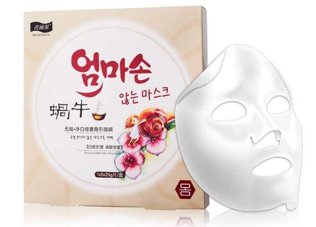 標稱廣州市尚氏化妝品有限公司、廣州市強邦化妝品有限公司聯(lián)合出品的亮麗萊蝸牛無暇凈白修復隱形面膜。