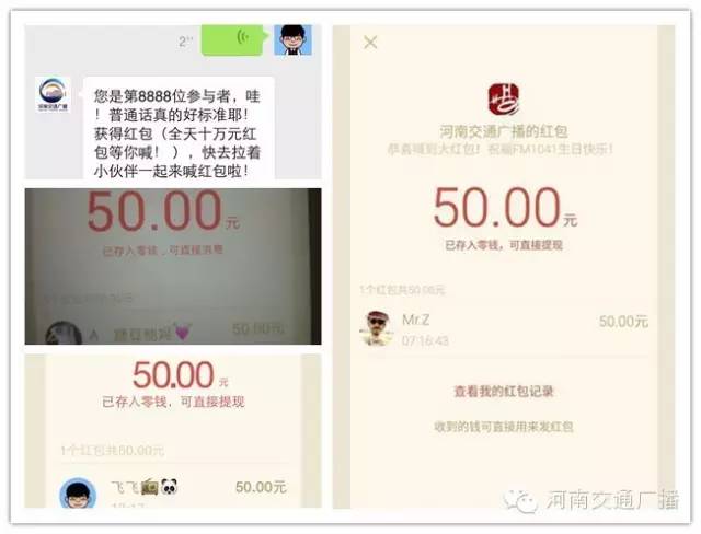 喊紅包會持續(xù)到今晚(3月30日)23點(diǎn),無論你在地球的哪個角落,無論你是通過收音機(jī)、還是用各種手機(jī)客戶端在收聽FM1041河南交通廣播,都可以參加。