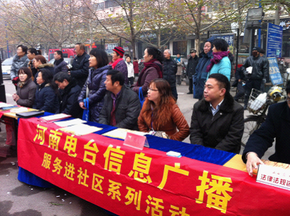 2011年12月2日(全國法制宣傳日前夕)河南人民廣播電臺信息廣播聯合建中街道辦事處在碧波園舉行了法制服務進社區(qū)活動?;顒俞槍θ嗣袢罕婈P心的生活問題、需要法治解決的現實問題,從情理、道理、法理以及憲法、法律、法規(guī)等等方面給予指導,通過答問題之疑、解法律之惑,真正為人民群眾排憂解難。使法制宣傳教育深入人心,認同法治精神,接受法治理念,共創(chuàng)和諧社會。