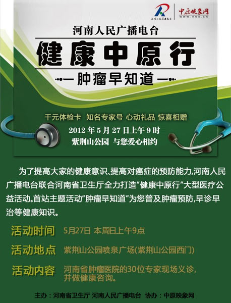 其實,癌癥是可以預(yù)防和干預(yù)的。為了提高大家的健康意識、提高對癌癥的預(yù)防能力,河南人民廣播電臺聯(lián)合河南省衛(wèi)生廳全力打造“健康中原行”大型義診活動。