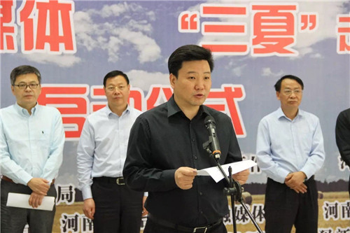 中共河南省委宣傳部副部長王仁海,宣布2016“廣電全媒體 三夏走基層”聯(lián)合報道活動正式啟動。