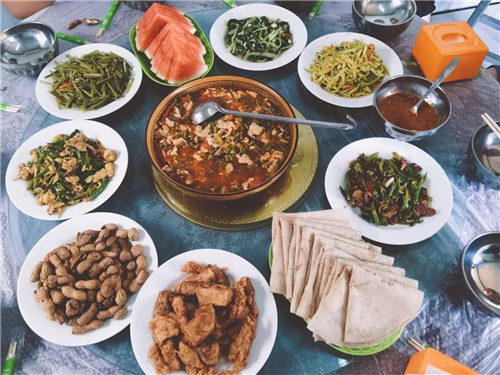 品嘗完清甜美味的葡萄之后,已經(jīng)到中午了,大家一起吃個(gè)農(nóng)家飯吧!