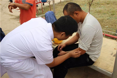 當天前來求診的工友絡(luò)繹不絕,專家們耐心解答工友疑問,傳授醫(yī)療保健知識,指導(dǎo)群眾平常要注意身體保健,養(yǎng)成良好的飲食習慣和生活習慣,甚至還為頸椎病患者、腰椎病患者進行即時針灸。義診從上午10點開始,一直開展到中午12點多,就診人群才慢慢散去,專家們早已餓得饑腸轆轆。專家們精湛的醫(yī)療技術(shù),耐心細致的服務(wù),受到建筑工人們的一致好評。