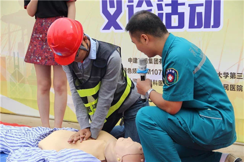 醫(yī)生們一邊操作,一邊講解,工人們有不明白的,還可以現(xiàn)場提問。幾乎每一位認真學習的建筑工人都想一試身手,醫(yī)生則在一旁一對一指導(dǎo)。