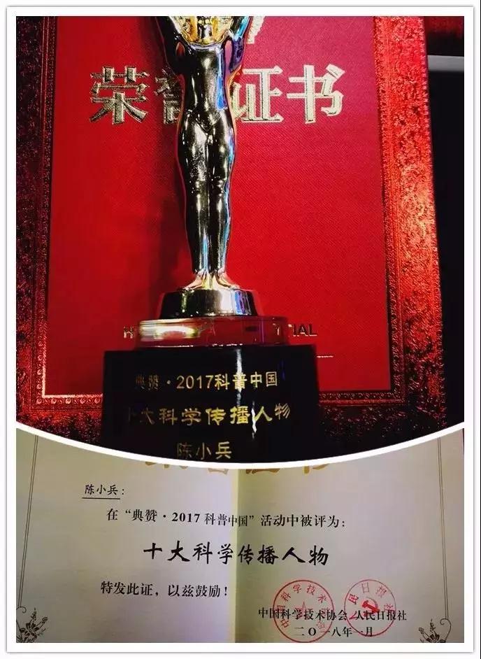 陳小兵當(dāng)選“2017年十大科學(xué)傳播人物”,組委會給予他的頒獎詞是,在緊張的臨床工作之余,他熱心醫(yī)學(xué)科普,下基層、走街道、進(jìn)校園、入社區(qū),腳步走遍中原,做科普講座300余場,受眾十余萬人,積極推廣“預(yù)防為主”的防癌理念,為腫瘤科普殫精竭慮,被譽為“中原腫瘤科普第一人”。