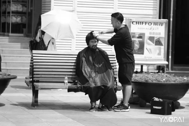 見到他,是在烈日下的二七廣場,話不多,不好意思的接過了我們遞去的一瓶水。想了想,接受了紅濤提出為他免費理發(fā)的想法。