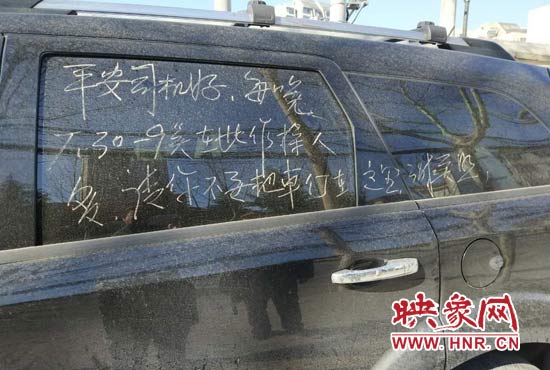 映象網(wǎng)快訊(記者 邱延波 文/圖)眾所周知,在全國各地,大爺大媽們對(duì)廣場(chǎng)舞的熱愛,幾乎是風(fēng)雨無阻,雷打不動(dòng)。鄭州市一車輛停在路邊,影響了大爺大媽們跳廣場(chǎng)舞,是可忍孰不可忍,他們?cè)谲嚿蠈懴拢⑼海?,提醒車主早點(diǎn)把車開走。