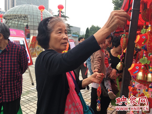 除了小朋友,現(xiàn)場還有很多老人們結(jié)伴在展臺前游逛。今年66歲的趙奶奶就站在一家布藝攤前,為自己身在國外的女兒挑選汽車掛飾?!八恢痹趪?,我就想給她買個有我們中國元素的東西掛在車?yán)铩!?/p>