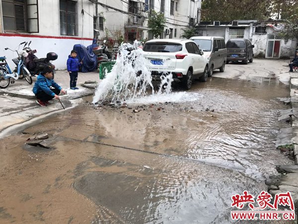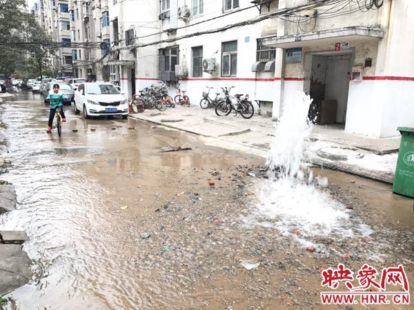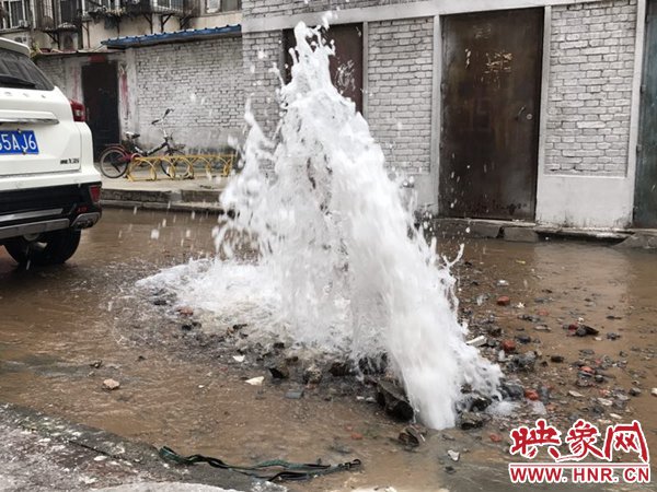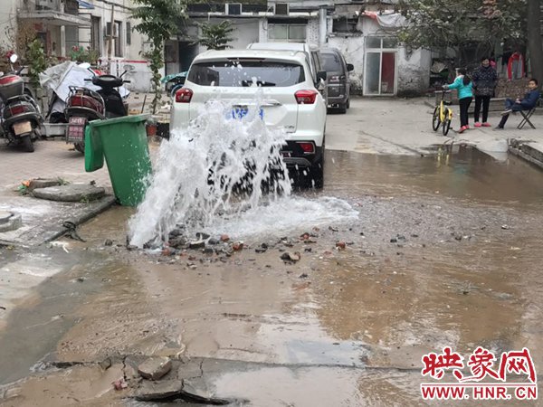 映象網(wǎng)快訊(記者 邱延波 文/圖)11月19日,鄭州桐淮小區(qū)南家屬院19號(hào)樓前,因地下自來水主管道爆管導(dǎo)致路面噴出2米多高的“噴泉”,白白浪費(fèi)掉兩三個(gè)小時(shí)的自來水。一輛轎車壓住閥門井蓋導(dǎo)致無(wú)法關(guān)閉閥門,而車主在黃河邊,下午才能回來,工作人員只好把小區(qū)的總閥門關(guān)閉。19日上午9時(shí)許,桐柏路汝河路口東南角處的桐淮小區(qū)南院19號(hào)樓2門洞前的自來水地下管道爆管現(xiàn)場(chǎng),小區(qū)水泥路邊爛個(gè)洞,噴出高高的水柱,小區(qū)道路上全是積水。