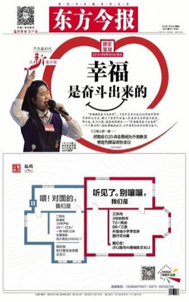 同時,東方今報還推出2018河南兩會特別策劃——“幸福都是奮斗出來的”,側(cè)重報道正在奮斗且勵志的社會中堅力量,一個個鮮活的人物故事勉勵我們,為中原更加出彩而努力奮斗。截至目前已刊登四篇報道,分別是《幸福是奮斗出來的系列報道之(1) 河南妞兩次為“彭媽媽”表演 特邀列席縣政協(xié)會議》《幸福是奮斗出來的系列報道之(2) 90后辭年薪二十萬工作創(chuàng)業(yè):我的心愿是“藝術(shù)+”》《幸福是奮斗出來的系列報道之(3) “海歸農(nóng)夫”師鵬飛:現(xiàn)代農(nóng)場放飛創(chuàng)業(yè)夢》。