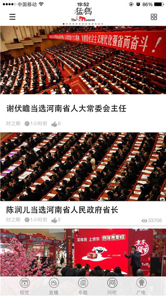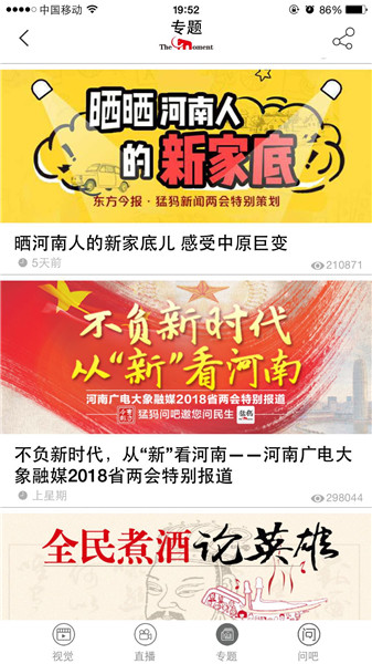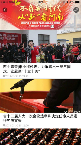 映象網(wǎng)訊(記者 秦雯)看兩會最熱最新鮮,看百姓關(guān)注,看代表委員風采,看各界如何解讀報告。1月22日起,河南進入2018兩會時間。大象融媒帶著問題聚焦兩會,帶著答案回應網(wǎng)民。其間,大象融媒旗下所屬各媒體大顯身手,貢獻出大量精彩的報道,直播、高清圖、系列策劃及H5產(chǎn)品等,這些內(nèi)容一經(jīng)推送,就吸引百姓高度關(guān)注,有些板塊更是形成“兩會熱門話題”和“網(wǎng)絡熱詞”,被網(wǎng)友分享,引代表委員熱議。
