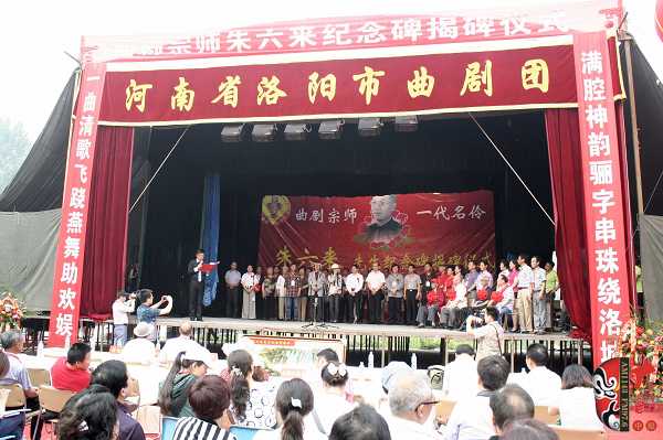 5月9日,由河南省藝術研究院、省戲劇家協(xié)會、省戲曲表演學會、洛陽市文廣新局、洛陽市戲劇家協(xié)會、洛陽市曲劇院主辦的,曲劇宗師?一代名伶朱六來先生紀念碑揭碑儀式在其故里洛陽市關林鎮(zhèn)大東村舉行。來自省內(nèi)的著名戲劇評論家、劇作家馬紫晨,河南省藝術研究院院長方可杰,戲劇評論家譚靜波,曲劇老藝術家劉衛(wèi)生、馬騏、牛長欣、高桂枝、郭鳳娥等,以及各地市兄弟院團代表參加了本次揭碑儀式。同時,著名曲劇表演藝術家“曲劇泰斗”馬騏,有南牛北馬之稱的南牛著名曲劇表演藝術家牛長欣,以及各兄弟院團的著名演員獻上了精彩的專場演出。