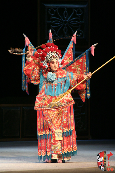 《戰(zhàn)洪州》又名《破洪州》、《六戰(zhàn)北國》、《擂鼓聚將》,是一出豫劇經(jīng)典傳統(tǒng)劇目,一直以來久演不衰,深受廣大觀眾喜愛。較之于別的豫劇表演團體演出的《戰(zhàn)洪州》,此次由漯河市豫劇團排演的《戰(zhàn)洪州》有著自己獨特的藝術特色,那就是從非物質(zhì)文化遺產(chǎn)項目傳承與保護的角度精心打造的一臺豫劇傳統(tǒng)劇目。該劇挖掘并在舞臺上展現(xiàn)了一些豫劇已經(jīng)瀕臨失傳的表演特技,如耍獠牙和武打設計等等,一些鮮為人知的傳統(tǒng)豫劇曲牌也在劇中運用,讓人耳目一新。
