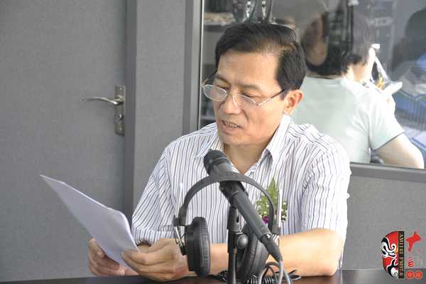 河南電臺戲曲廣播《戲迷樂》、《票友排行榜》主持人王博(左)在本次活動戶外直播間