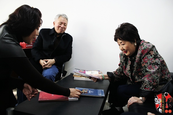 京劇荀派傳人孫毓敏(左)欣賞戲曲廣播五周年雜志