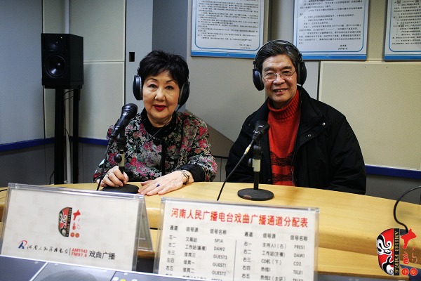 河南電臺(tái)戲曲廣播總監(jiān)木子(左)為京劇荀派傳人孫毓敏(右)介紹河南電臺(tái)戲曲廣播曾經(jīng)舉辦的中秋戲曲晚會(huì)