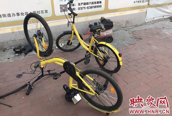 車子損壞率有多少?目前并不能準確統(tǒng)計。3月27日上午,記者來到位于鄭州政六街與豐產(chǎn)路交叉口附近的一處ofo共享單車維修點。