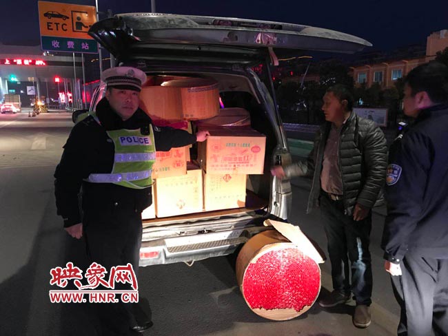 面包車?yán)d42件煙花爆竹上高速 被周口民警查獲
