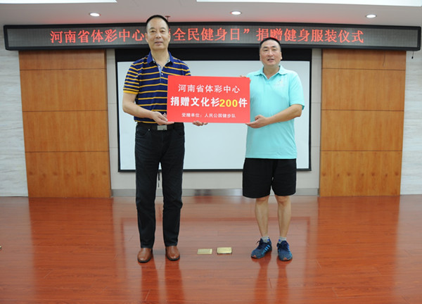 據(jù)河南省體彩中心主任孫和平介紹,中國(guó)體育彩票作為國(guó)家公益彩票,其發(fā)行宗旨是“來之于民 用之于民”,一直履行著支持全民健身這一光榮使命。去年是《意見》印發(fā)的第二年,河南體彩中心已開始落實(shí)該文件精神,向社會(huì)健身團(tuán)體捐贈(zèng)了3000件健身服裝,受到健身群體的歡迎和高度贊揚(yáng),取得了良好的社會(huì)效益。今年的捐贈(zèng)是河南體彩中心支持我省全民健身這一公益活動(dòng)的延續(xù),今后我們將嘗試擴(kuò)大捐贈(zèng)范圍,讓更多的健身群體在強(qiáng)身健體、重視體育、支持體育、參與體育的過程中,感受到中國(guó)體育彩票的關(guān)注和支持,讓更多的群眾在健身中受益。孫主任表示:河南體彩中心也希望通過持續(xù)和擴(kuò)大類似的公益活動(dòng),為我省的父老鄉(xiāng)親在強(qiáng)身健體、健康生活的道路上,做出河南體彩人積極的貢獻(xiàn)。今年我省的“全民健身日”主題活動(dòng)將在焦作舉行,各地市也會(huì)開展大規(guī)模的全民健身主題活動(dòng),預(yù)祝我省的全民健身主題活動(dòng)圓滿成功。