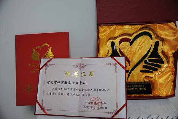 河南省體育彩票管理中心榮獲突出貢獻(xiàn)獎(jiǎng)