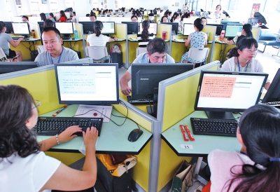 昨天上午9點半,鄭州47中的評卷現(xiàn)場內(nèi),各科評卷教師被分別集中在相應(yīng)的機房里閱卷評卷,十分安靜。
