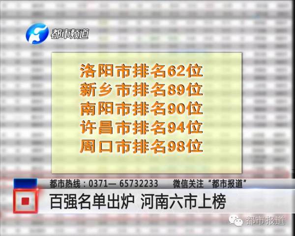 △《都市報道》:百強(qiáng)名單出爐 河南六市上榜↑↑↑