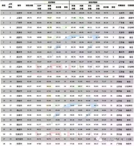 2016年中國百強(qiáng)城市榜河南占6席!