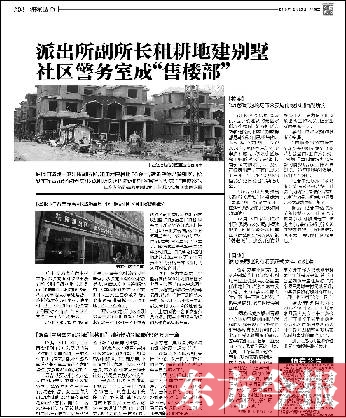 12月20日,東方今報(bào)以《派出所副所長租耕地建別墅 社區(qū)警務(wù)室成“售樓部”》為題,報(bào)道了項(xiàng)城市一派出所副所長租耕地建別墅銷售一事。報(bào)道刊發(fā)后,引起項(xiàng)城市委、市政府高度重視。昨日,記者從項(xiàng)城市委宣傳部獲悉,該副所長被開除公職,項(xiàng)城市委、市政府成立聯(lián)合調(diào)查組,對(duì)該區(qū)域開發(fā)事件進(jìn)行拉網(wǎng)式排查。