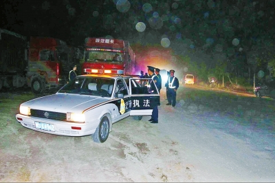 信陽(yáng)60余輛超限車欲深夜集體闖崗 車被扣