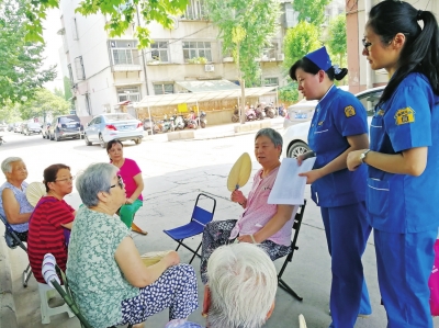“奶奶,我們那里每月集中兩次免費(fèi)體檢,您方便的時候可以過去看看。”現(xiàn)場,為82歲的郭玉蘭老人量過血壓,高嚴(yán)提醒老人再進(jìn)行常規(guī)體檢,查查血糖、心臟等。高嚴(yán)說,為調(diào)動居民簽約家庭醫(yī)生服務(wù)的積極性,社區(qū)衛(wèi)生服務(wù)中心降低了免費(fèi)體檢年齡,不管是鄭州市民還是外地來鄭務(wù)工者,只要年滿60周歲,自愿簽約家庭醫(yī)生服務(wù),每年便可享受一次常規(guī)體檢。