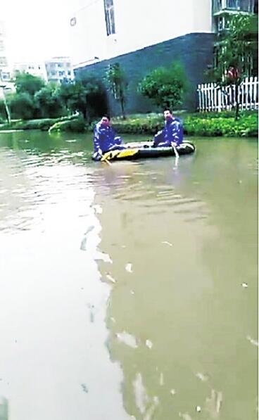 街道積水到膝蓋,小區(qū)內劃船出行