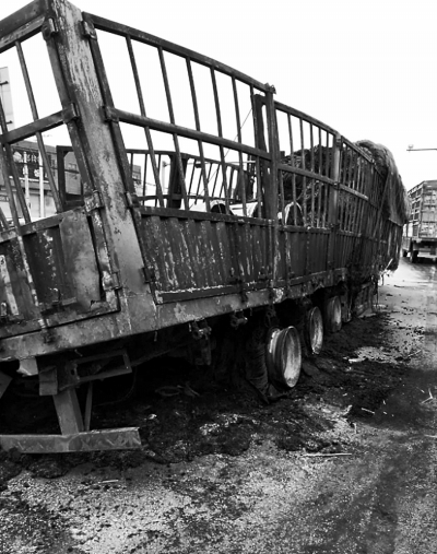 大貨車的車身被燒毀武陟縣交通運(yùn)輸局執(zhí)法所供圖