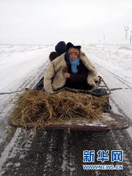 由于降雪導(dǎo)致牧區(qū)交通不暢,給牧民的生產(chǎn)生活帶來很大的困難。采訪沿途,記者見到了一輛毛驢車上從遠處駛來,車上坐著兩位老人。73歲的正藍旗烏蘭二隊的農(nóng)民張藍花說,雪太大班車也不通,老伴犯了腎病,他們只好在家門口鏟出小道,趕著毛驢車走到了公路上,準備到鎮(zhèn)醫(yī)院看病。