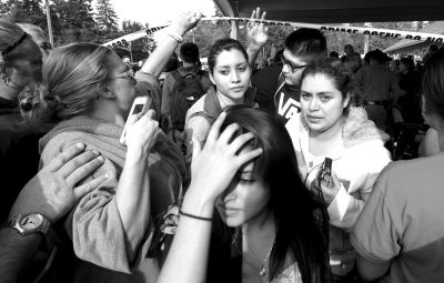 10月24日,在美國華盛頓州西雅圖市,學(xué)生和家長在槍擊案發(fā)生后團(tuán)聚。新華社發(fā)