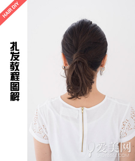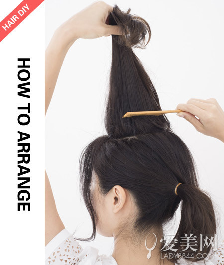 step2:留出頭頂?shù)念^發(fā)將腦后的頭發(fā)綁成馬尾。