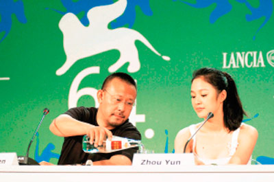 2001年,還是新人的她剃了光頭在《天地英雄》中反串慧覺和尚,并結(jié)識了姜文。因?yàn)橹茼嵲谥醒霊騽W(xué)院時的老師張仁里,同時也是姜文當(dāng)年的專業(yè)課老師,這對年齡相差15歲的師兄妹,更加有了共同語言。得到了姜文的青睞,周韻被姜文推薦給自己正在拍的另一部戲,這就是由陳逸飛執(zhí)導(dǎo)的電影《理發(fā)師》。