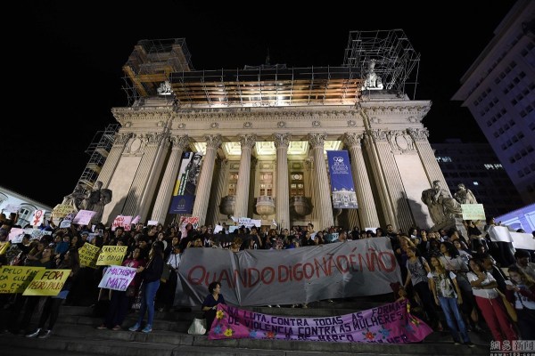 當?shù)貢r間5月27日,巴西里約,民眾示威抗議少女遭輪奸。