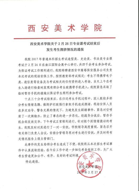 西安美術(shù)學(xué)院發(fā)布的情況通報(bào)。