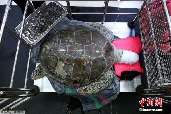 海龜誤食千枚許愿幣 "洗胃"后仍不幸去世