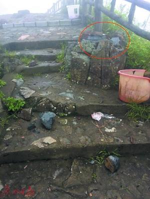 另據隊長羅燦輝在山頂上察看發(fā)現,山頂有多塊巨石被雷電擊碎散落在地面上。其中有一塊被擊碎的巨石,后經證實,就是事發(fā)時王女士所站的區(qū)域。