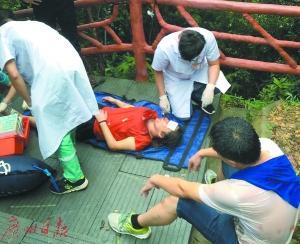 醫(yī)護人員在半山處對傷者進行救治。廣州日報 圖