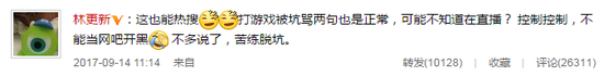 林更新回應被王思聰罵:打游戲罵兩句正常
